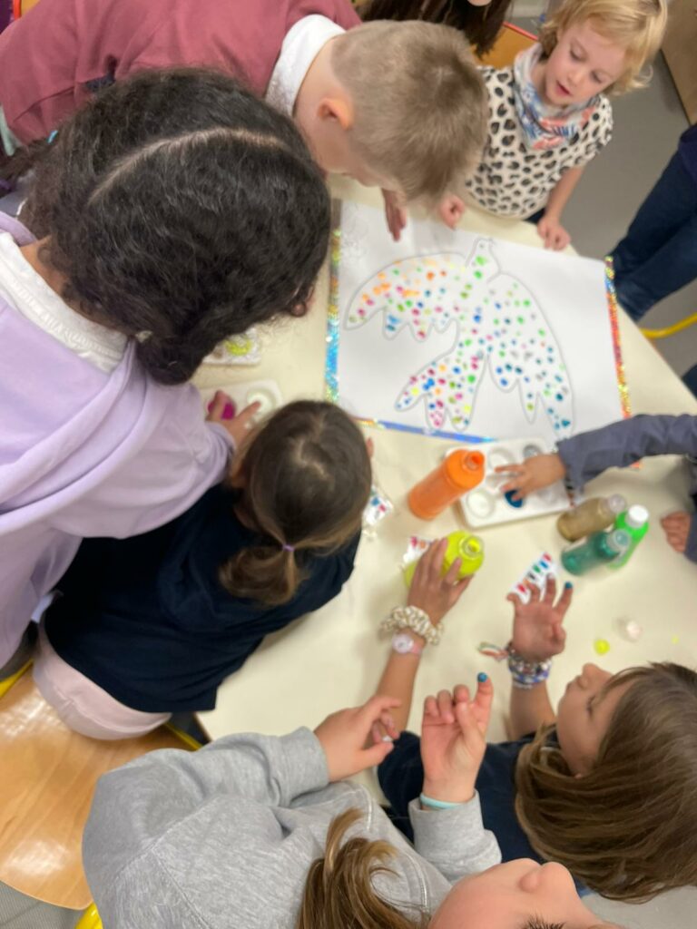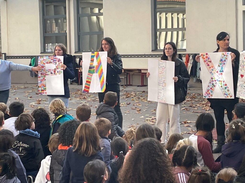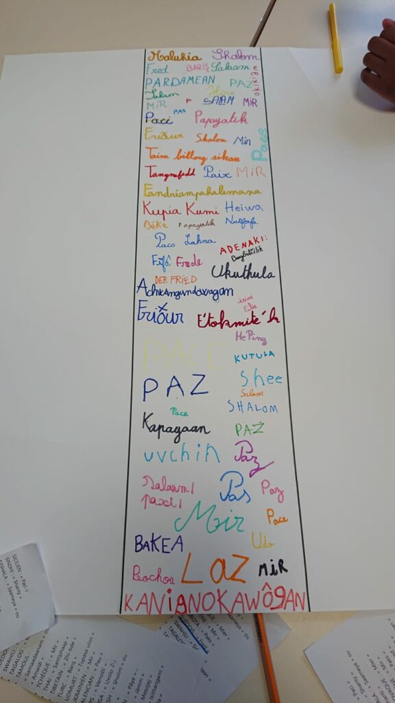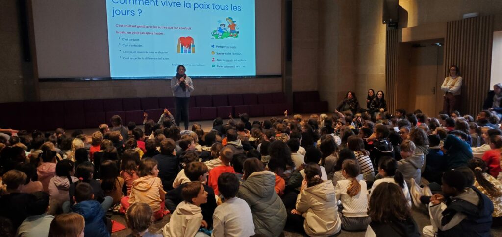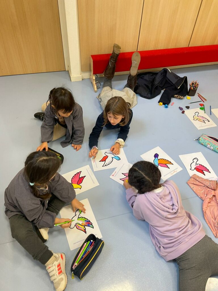 A la suite d’un temps fort où nous avons célébré la paix , les classes parrainées ont mis en place des ateliers ensemble pour échanger sur la paix et reconstituer le mot PAIX avec les élèves de toute l’école.
