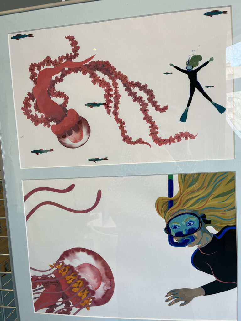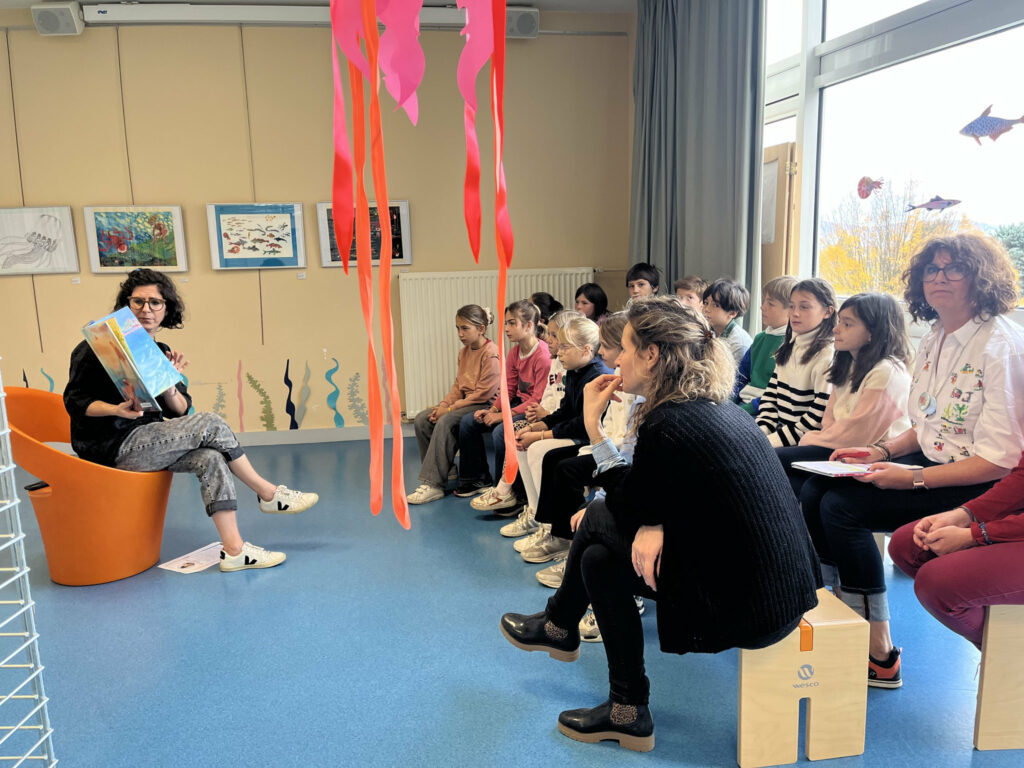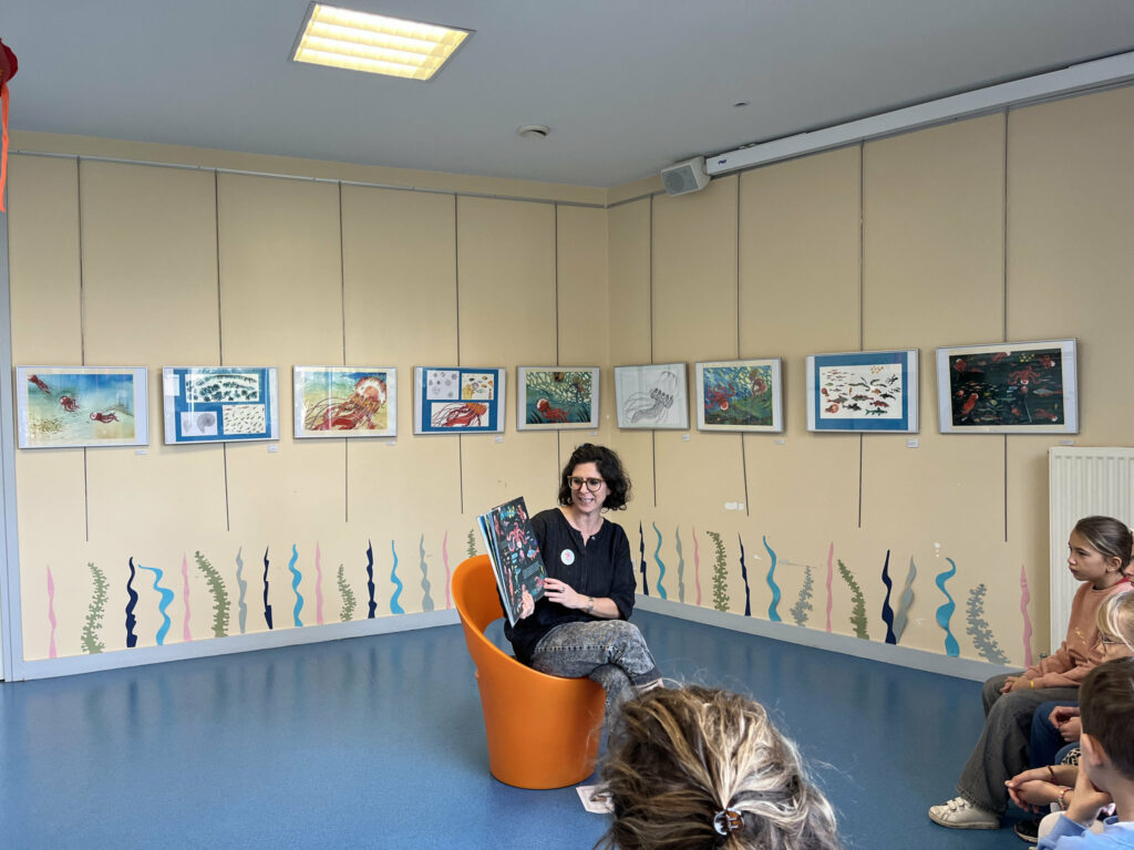 Ce jeudi 6 novembre, les CMB ont été accueillis à la Bibliothèque de Sainte-Foy-Lès-Lyon pour une animation consacrée aux œuvres de l’illustratrice Alexandra Huart, plus particulièrement au livre « Je suis une méduse ».