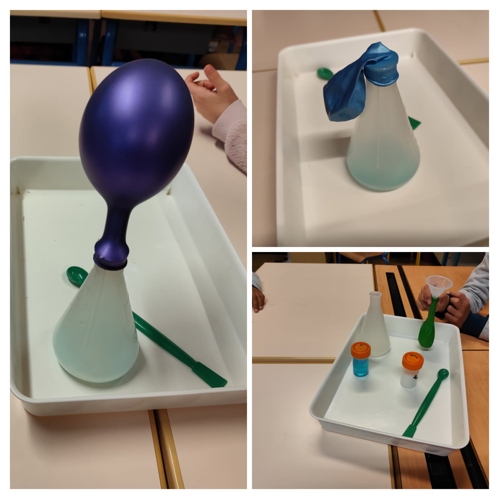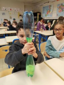 Lors de l’atelier de sciences animé par le professeur OOPS , les élèves de CE2B ont découvert ce qu’est la matière:  solide, liquide et gazeux.