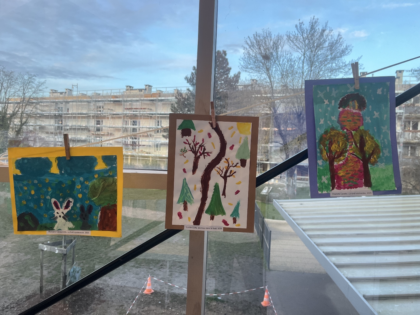 Fin janvier, la classe de CE1 a exposé les peintures réalisées par les élèves sur le thème de la forêt.