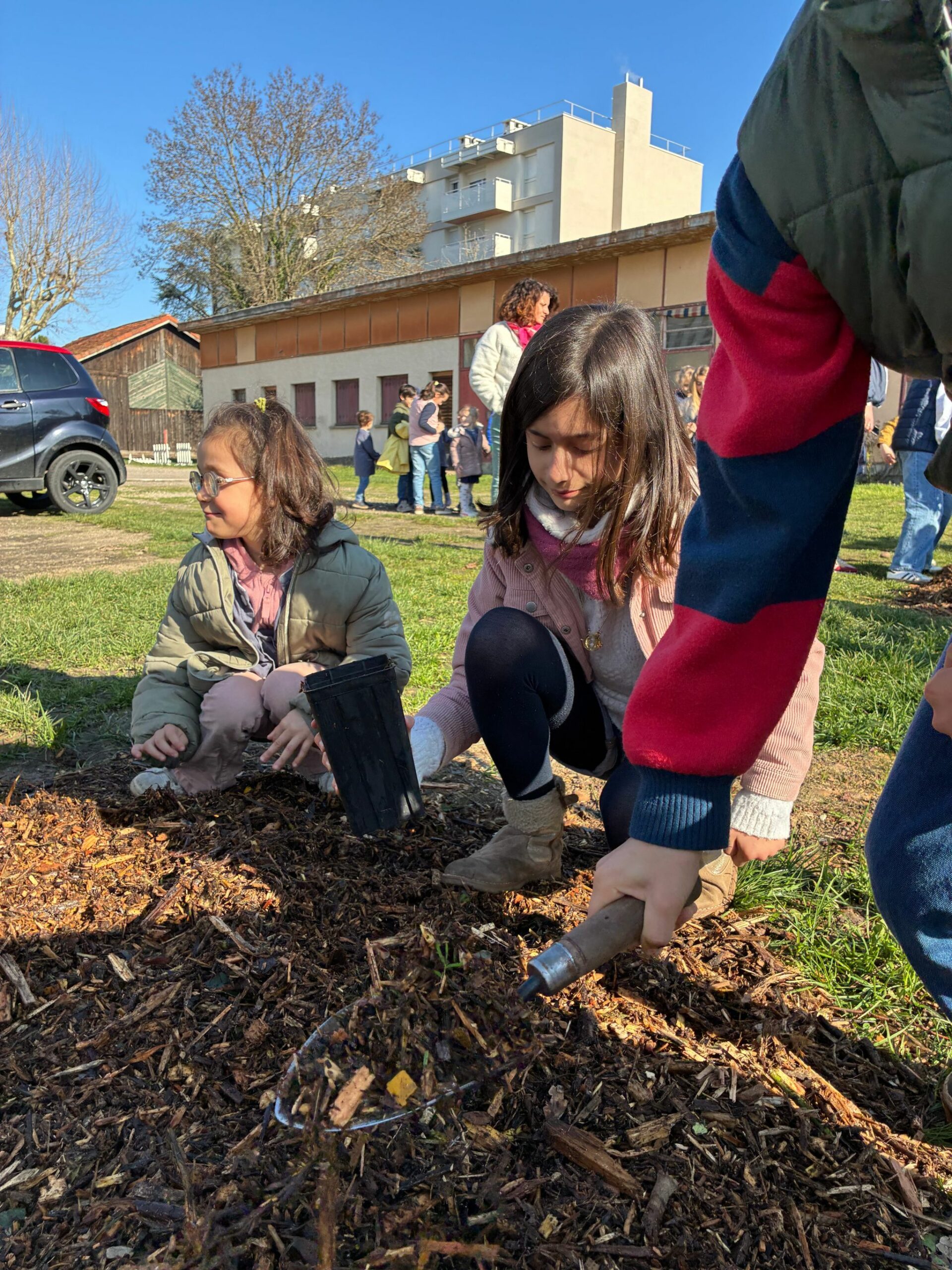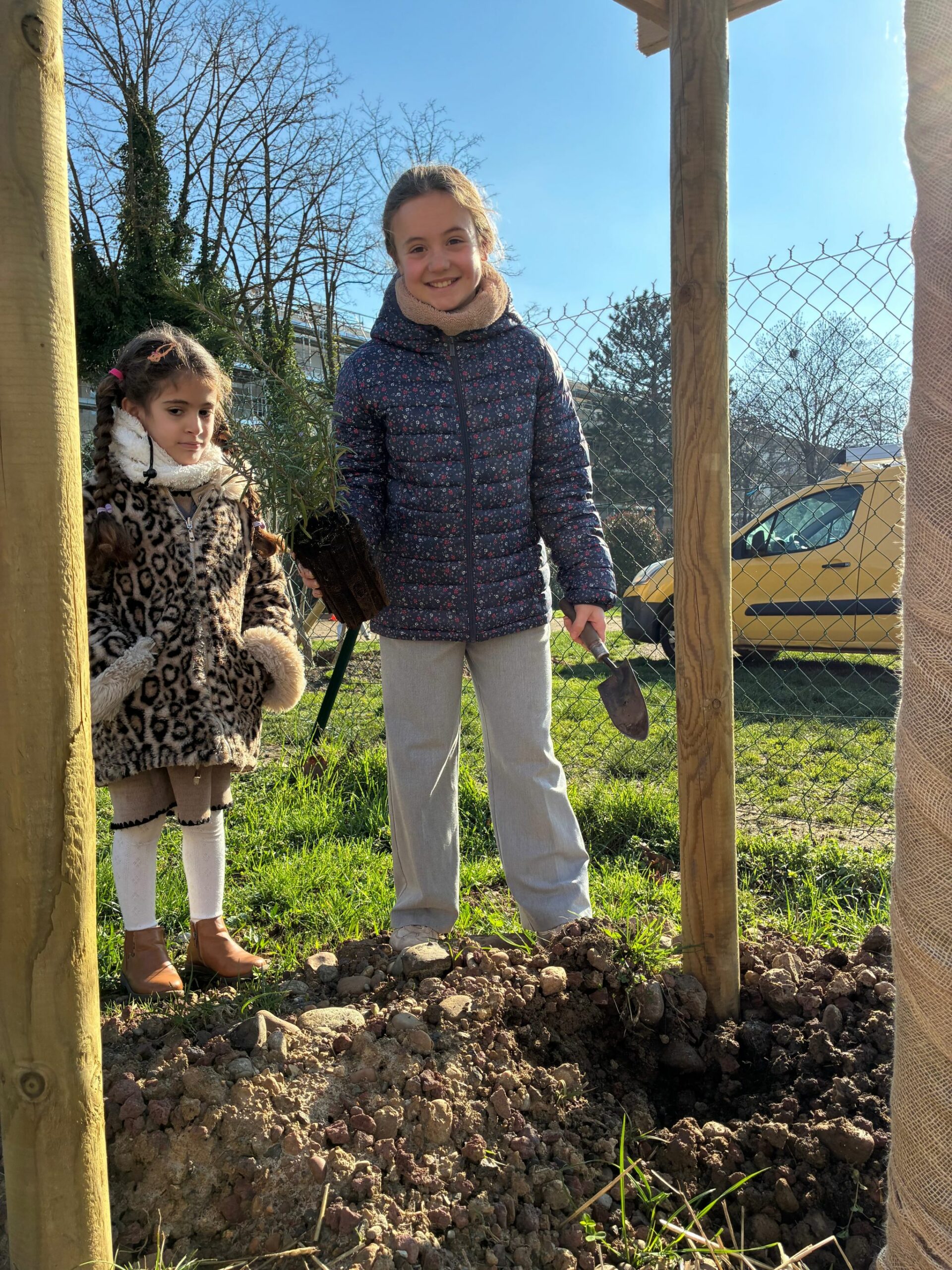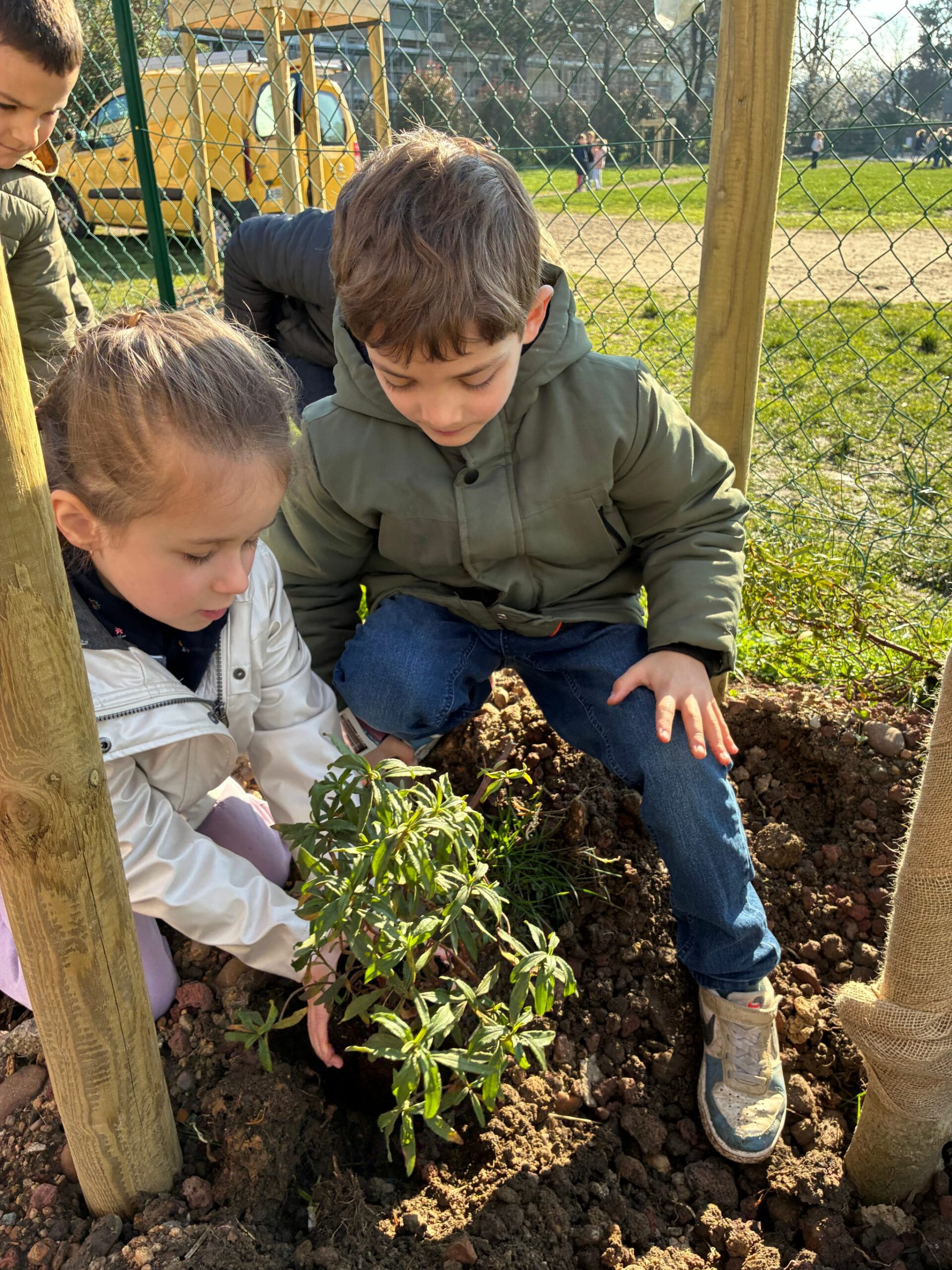 Ce jeudi 26 février, tous les élèves de l’école ont participé à la plantation des nouvelles pousses dans la cour.