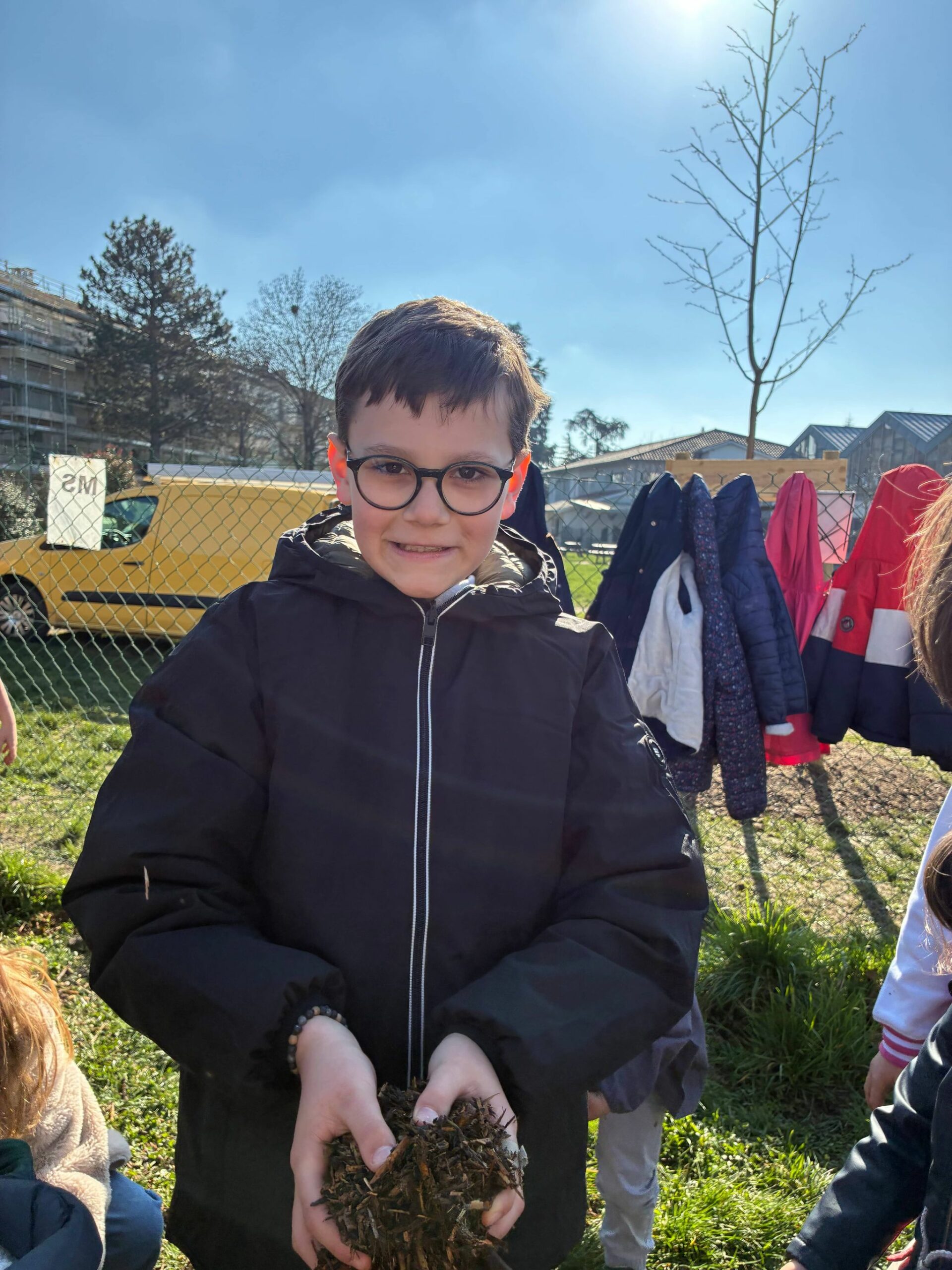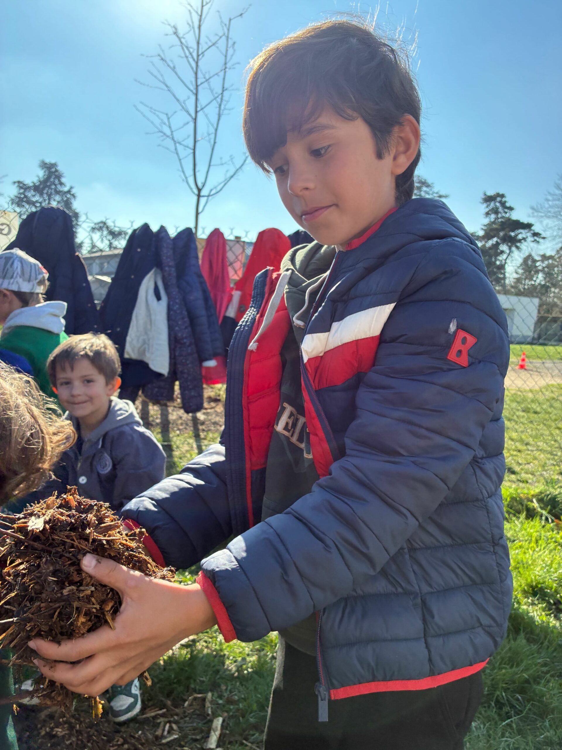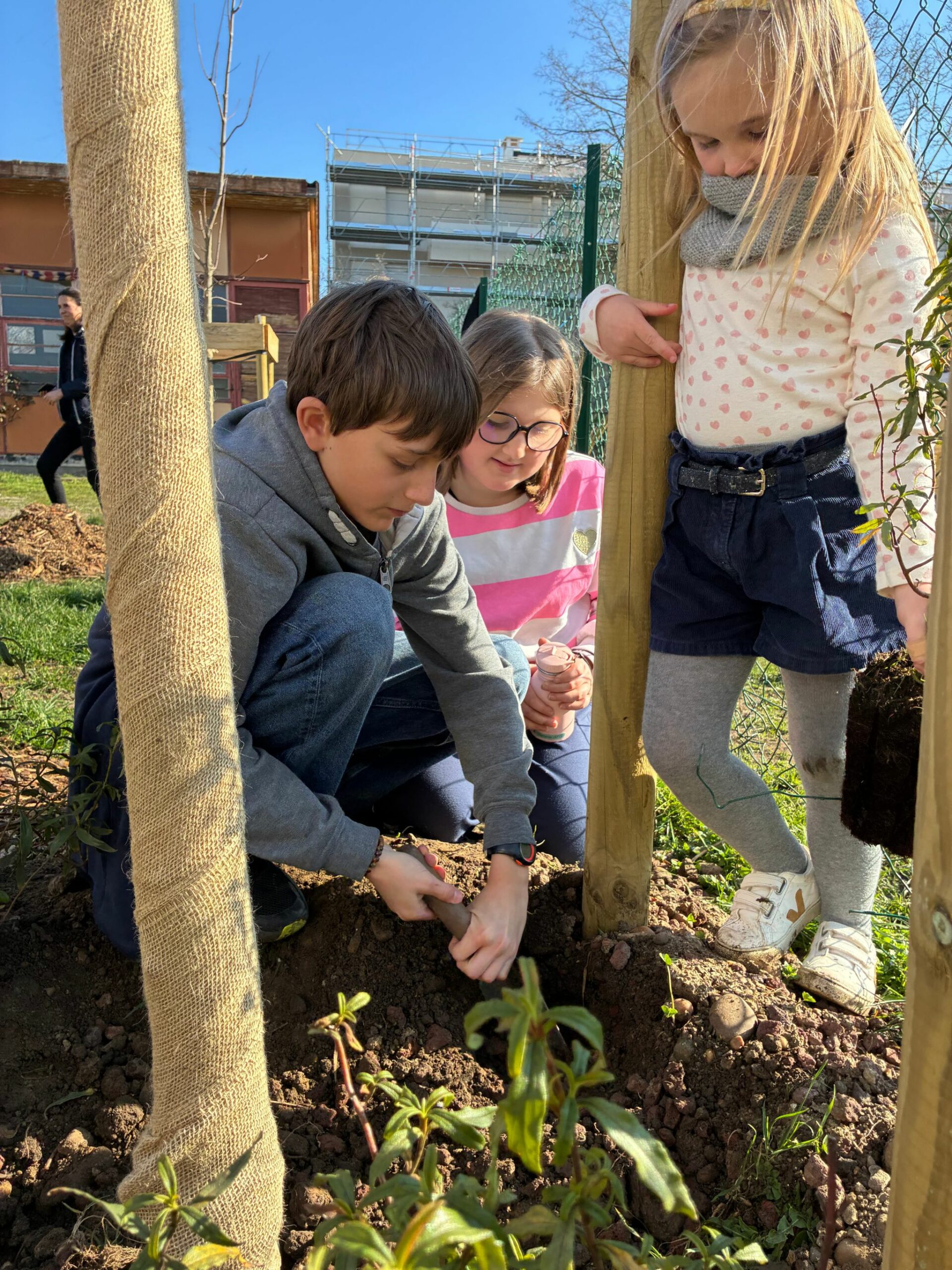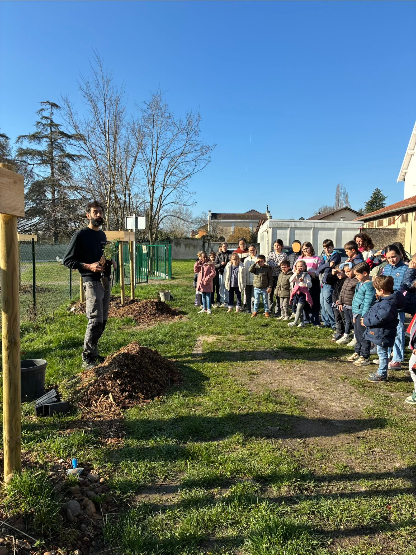 Ce jeudi 26 février, tous les élèves de l’école ont participé à la plantation des nouvelles pousses dans la cour.